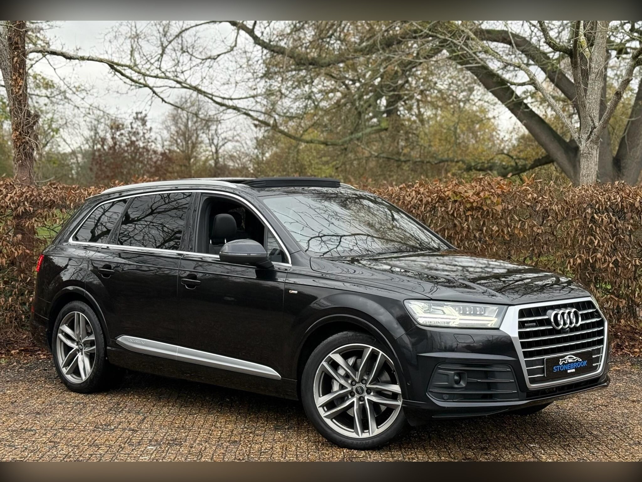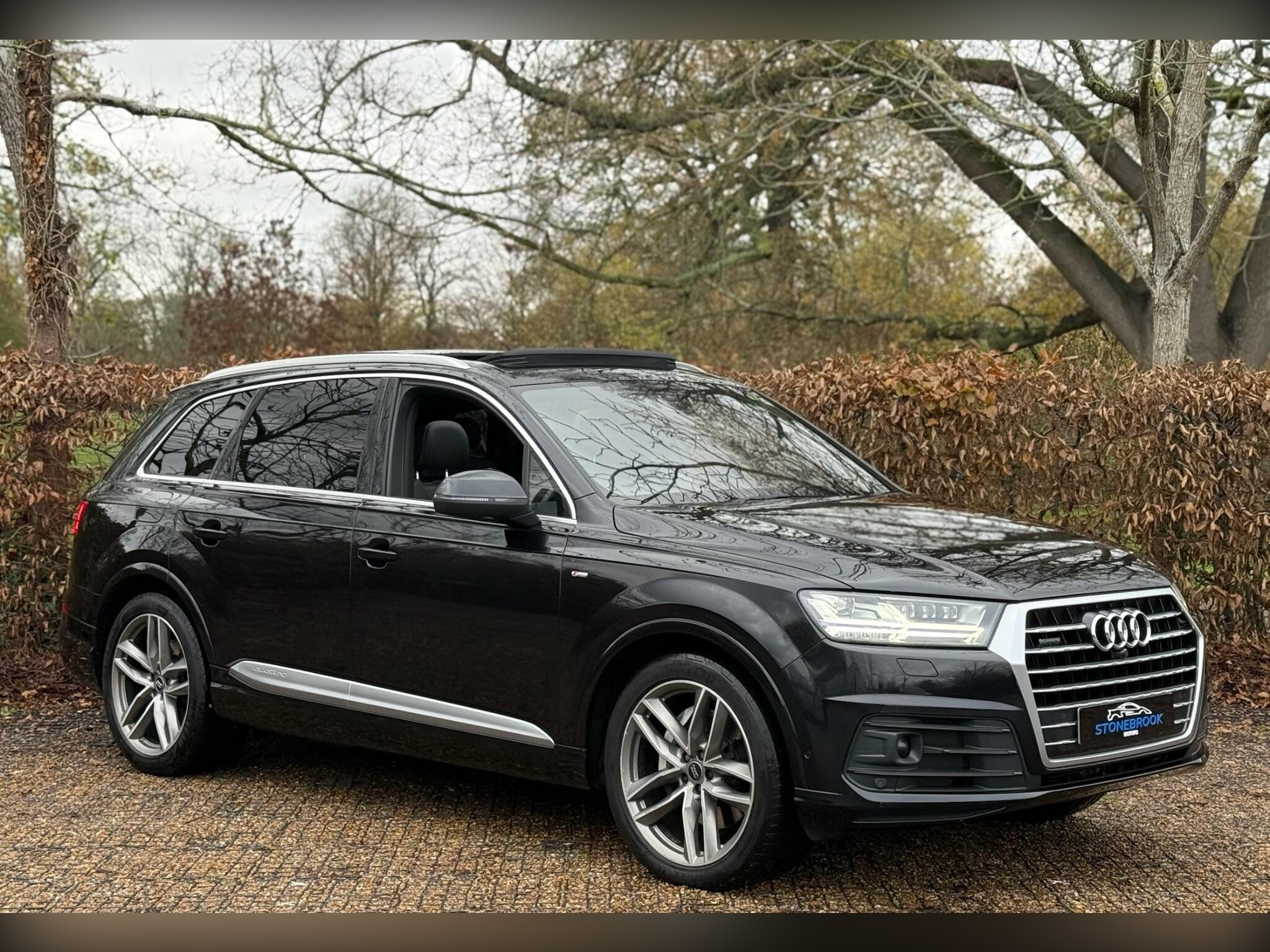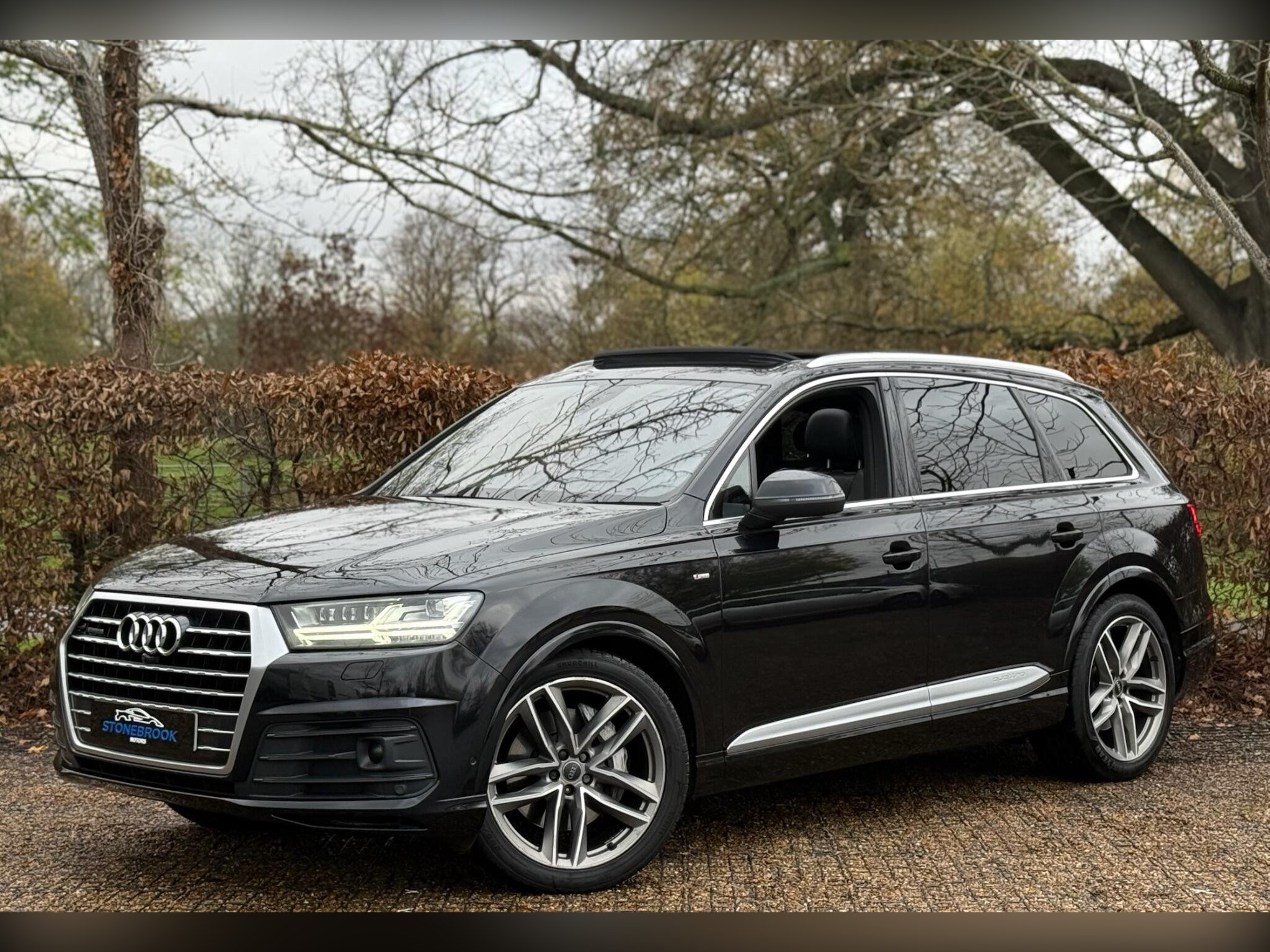 This 2017 Audi Q7 S line combines premium comfort, power, and full 7-seater practicality with serious spec. Finished in a stunning black exterior over black leather interior, this high-spec Q7 has had 3 previous owners, comes with full service history, and is loaded with sought after factory options, including panoramic roof, air suspension, Audi Matrix headlights, and much more.